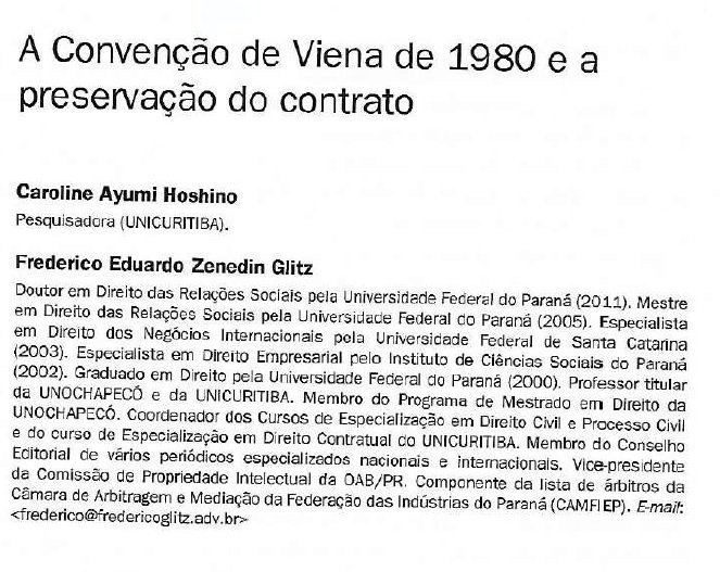 REFERÊNCIA: HOSHINO, C. A.; GLITZ, Frederico E. Z. A Convenção de Viena de 1980 e a preservação do contrato. Revista de Direito Empresarial, n.3, Set/dez 2015, p. 81-101.