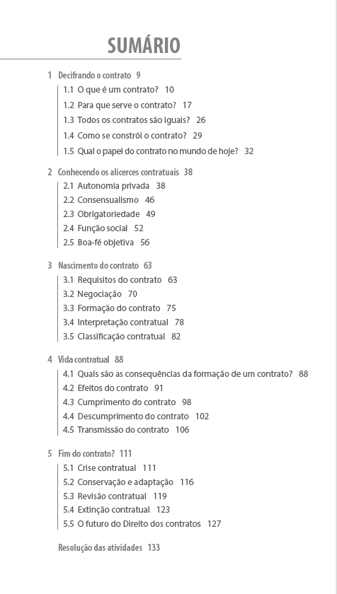 Este livro se propõe a apresentar, de maneira didática, a chamada Teoria Geral dos Contratos, isto é, os fundamentos que regem o Direito contratual brasileiro. Apesar dessa nomenclatura, saiba que a preocupação do autor e da equipe editorial foi tratar o tema de maneira dialogada com a sua realidade. Gostaríamos que ao final de sua leitura você entendesse o que pode ser um contrato, como ele nasce, se desenvolve e se extingue e a sua importância no mundo em que vivemos. Nossa expectativa é que o conteúdo desta obra possa lhe abrir os olhos para um fenômeno de seu dia a dia, mas, também, ampliar seus horizontes e permitir que você possa imaginar futuros possíveis.