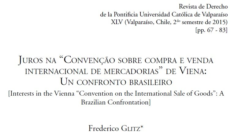 REFERENCIA: GLITZ, Frederico E. Z. Juros na “Convenção sobre compra e venda internacional de mercadorias” de Viena: Um confronto brasileiro. Revista de Derecho de la Pontificia Universidad Católica de Valparaíso XLV (Valparaíso, Chile, 2do semestre de 2015)[pp. 67 – 83]