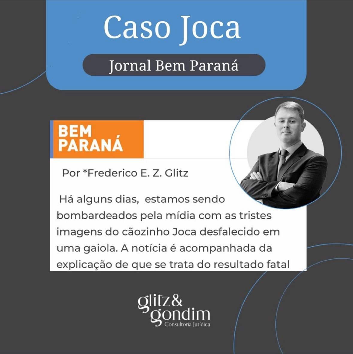 Confira o artigo publicado pelo Dr. Frederico Glitz para o Bem Paraná , sobre o caso Joca.