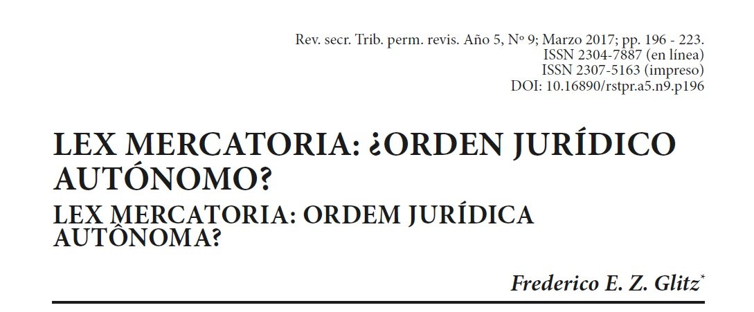 REFERENCIA: GLITZ, Frederico E. Z. Lex mercatoria: orden jurídico autonomo? Revista da Secretaria do Tribunal permanente de revisão do Mercosul, n. 9, ano 5, março de 2017, p. 196-223.
