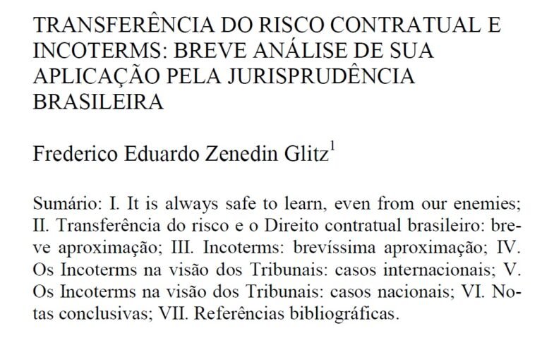 TRANSFERÊNCIA DO RISCO CONTRATUAL E INCOTERMS