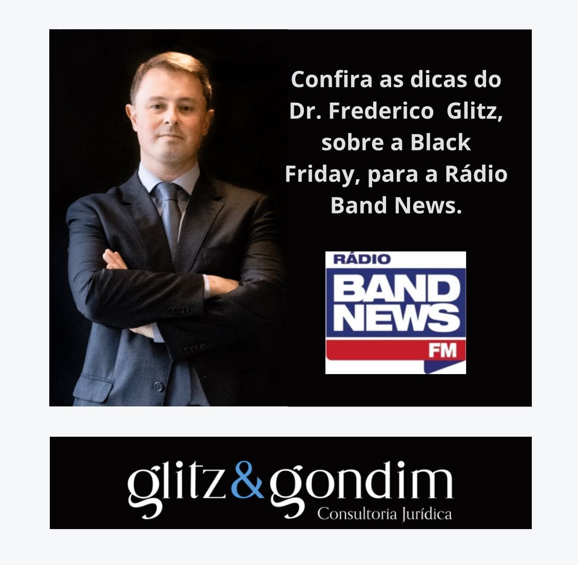 Confira a entrevista do Dr. Frederico Glitz, para a Rádio BandNews Curitiba, no dia 11/11/2021, sobre os cuidados que o consumidor deve ter na hora de aproveitar as promoções de black friday.