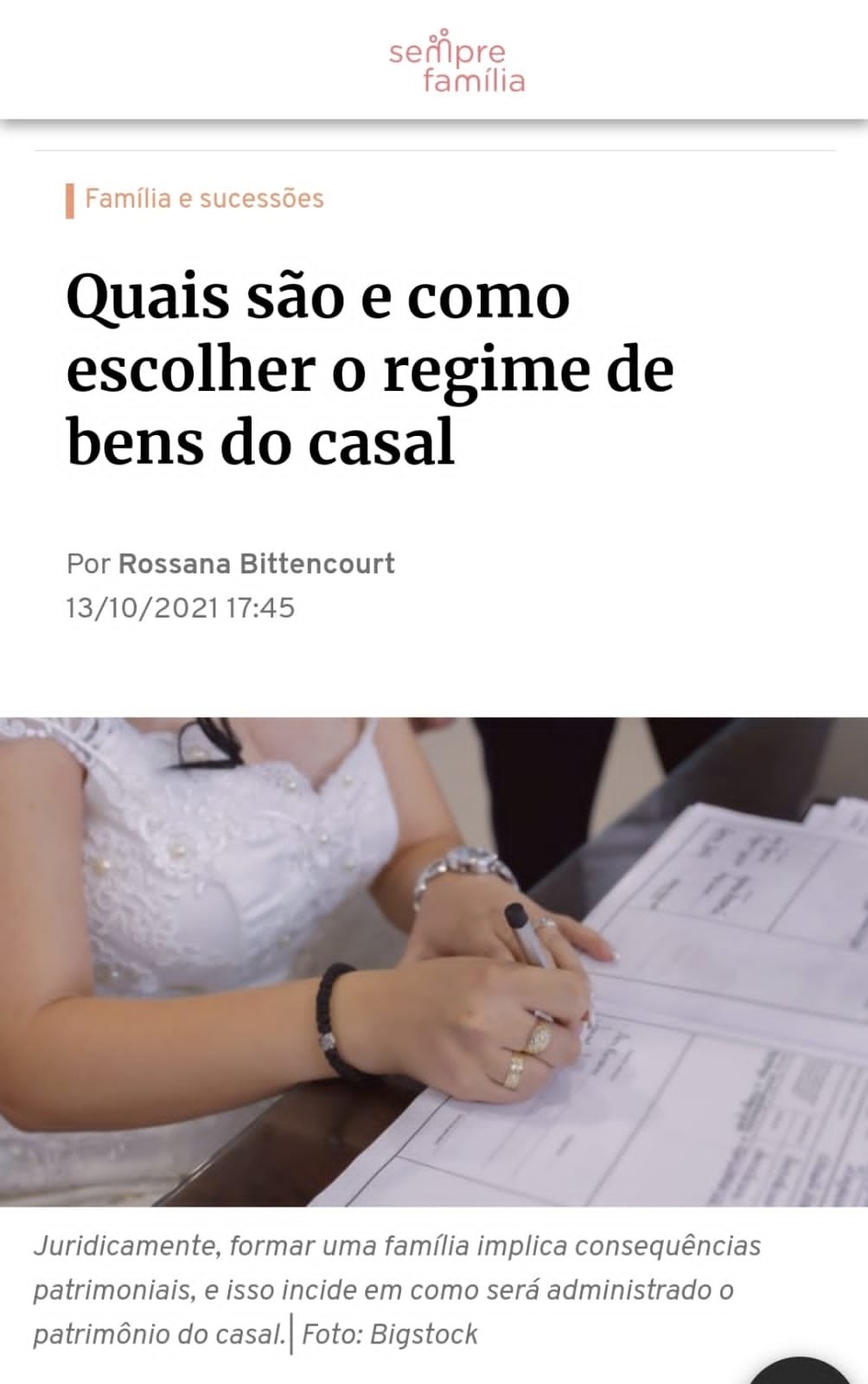 Link da entrevitsa: https://www.semprefamilia.com.br/casamento-e-compromisso/quais-sao-e-como-escolher-o-regime-de-bens-do-casal/