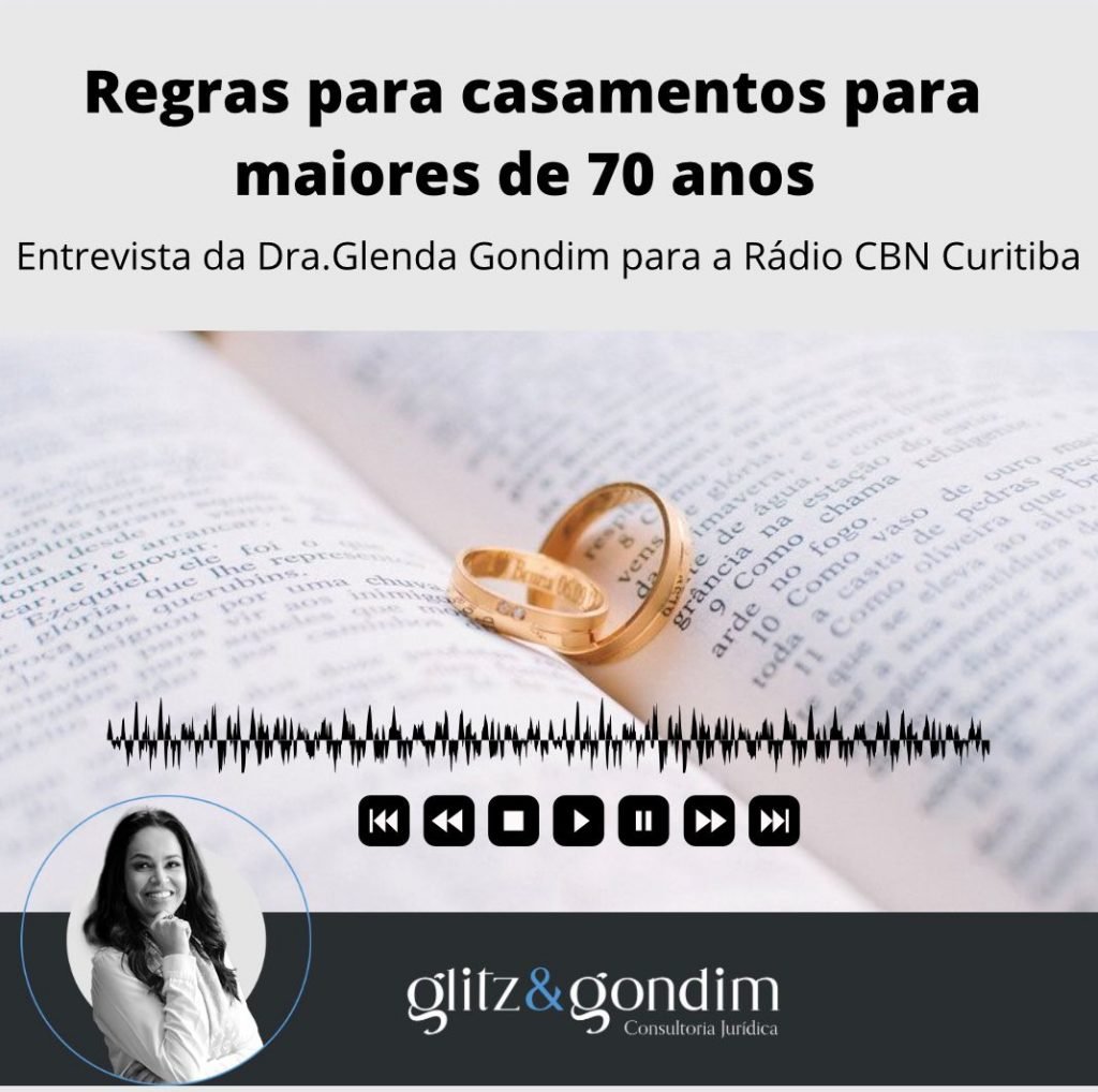 Confira a entrevista da Dra. Glenda Gondim, concedida para a Radio CBN Curitiba, em 29/12/2021, sobre as regras aplicáveis aos casamentos envolvendo pessoas maiores de 70 anos.